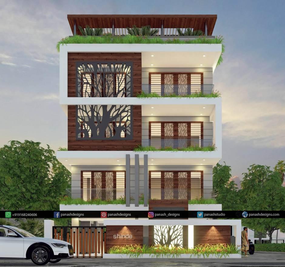 At Panash Designs, you can see the quality of work. You can select the front elevation pattern and style here for your elevation design and customize your elevation design as per your choice. We are specialists in to provide the best Indian house front elevation designs which are simple, modern and easy to executable house front elevation designs for small houses.